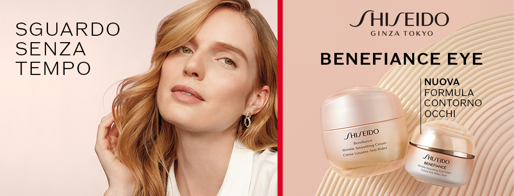 Ampio catalogo con fondotinta, creme viso, solari e profumi Shiseido.
