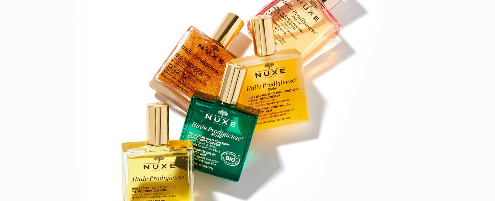 Nuxe seleziona piante dalle proprietà preziose, estraendone i principi attivi più efficaci, fonte di energia e di rigenerazione, grazie a quest’arte unica Nuxe conta già più di 45 brevetti depositati. Da questo approccio innovativo al trattamento e alla bellezza, Nuxe ha creato prodotti unici per ogni momento della beauty routine: trattamenti viso, corpo, detergenti, anti-età, multifunzionali e solari. Emblema del mondo Nuxe è l’Huile Prodigieuse®, oggi icona della marca e prodotto cult amato da tutte le donne. Questo trattamento dall’inedita texture secca e fragranza inimitabile nutre e ripara viso, corpo e capelli in un unico gesto.